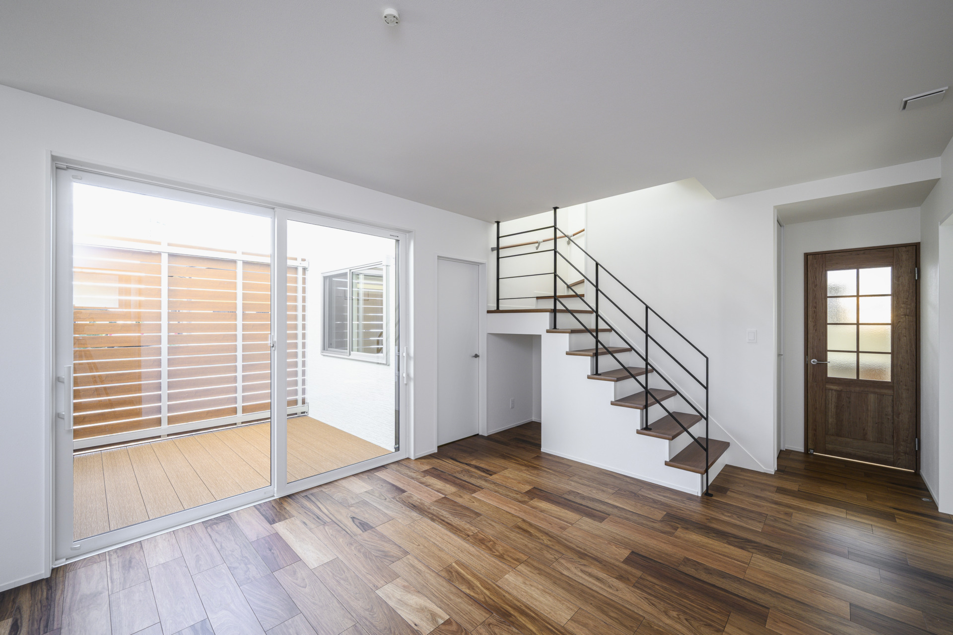 そのため、1階部分をコの字型にして中庭空間を設けてデッキを設置し、