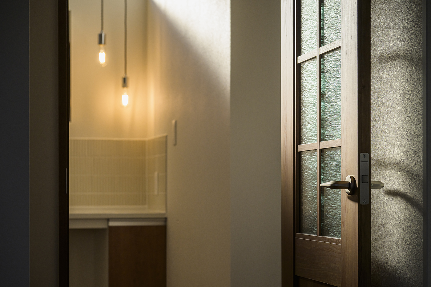 N様のほうでも色々悩みながら選ばれたアクセントクロスやタイル、建具、照明器具は