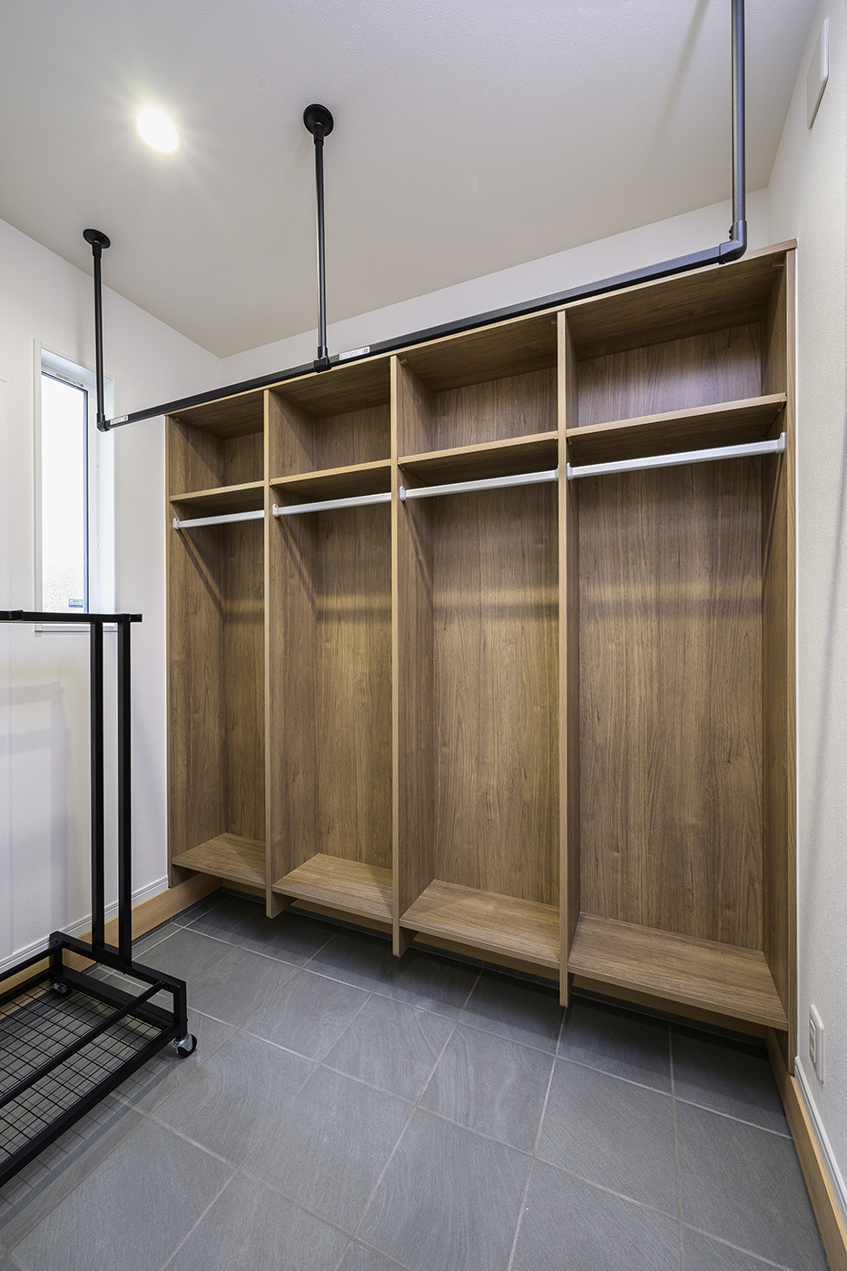 スキー用具専用のストレージにはご家族それぞれのロッカーも完備。
